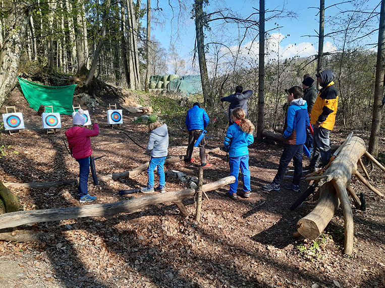 Wir bieten Bogensport als Schnupperangebot an, dabei handelt es sich um ein ca. 2 Stündigen Aufenthalt im Wald.